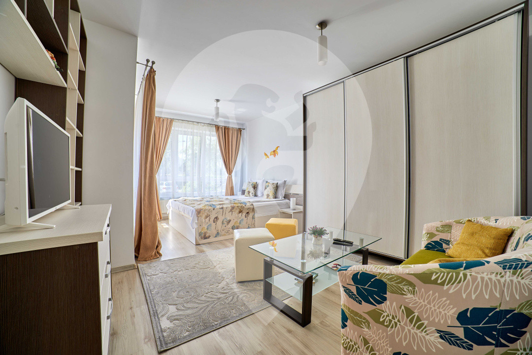 — Spațiu open-space luminos: living + zonă de dormit + dining