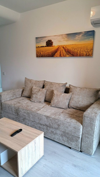 Dispune de un living luminos echipat cu o canapea extensibila, TV, AC, dormitor cu pat matrimonial, dressing incapator, 1 baie.