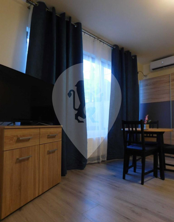 Dispune de un living luminos echipat cu o canapea extensibila, TV, AC, dressing incapator, 1 baie.