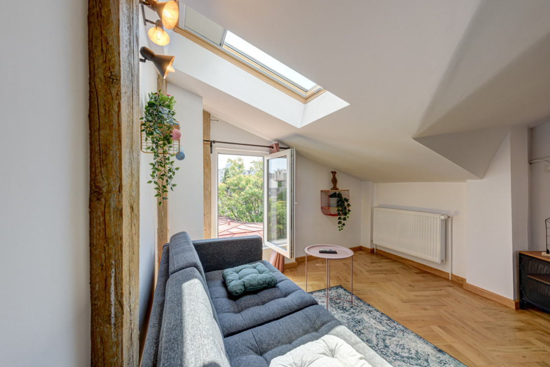 Imobilul este situat la etajul 4 intr-un bloc cu regim de inaltime P + 4, finalizat in anul 1935, avand o suprafata utila de 40 mp.