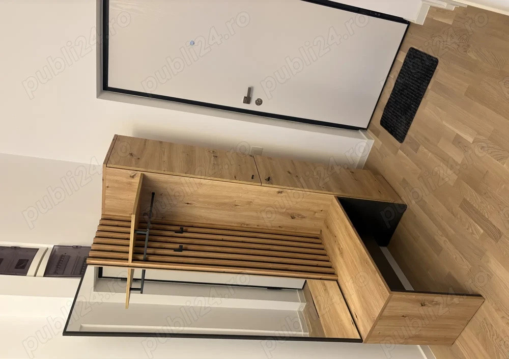 Dispune de un living luminos echipat cu o canapea extensibila, TV, AC, dormitor cu pat matrimonial, dressing incapator, 1 baie. Imobilul dispune de centrala termica cu incalzire prin pardoseala.