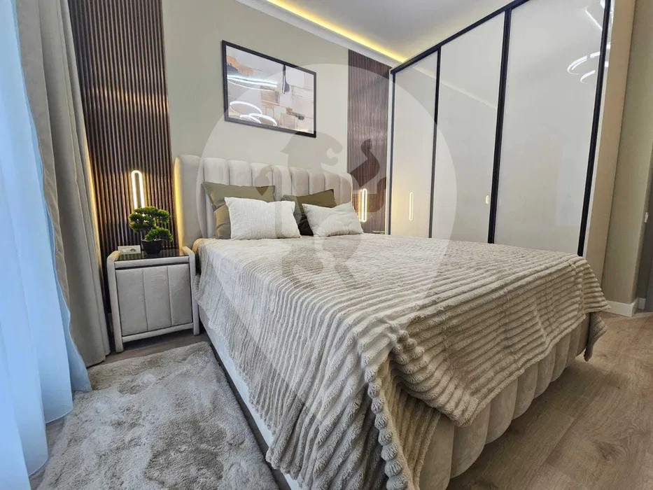 Dispune de un living luminos echipat cu o canapea extensibila, TV, AC, dormitor cu pat matrimonial, dressing incapator, 1 baie.