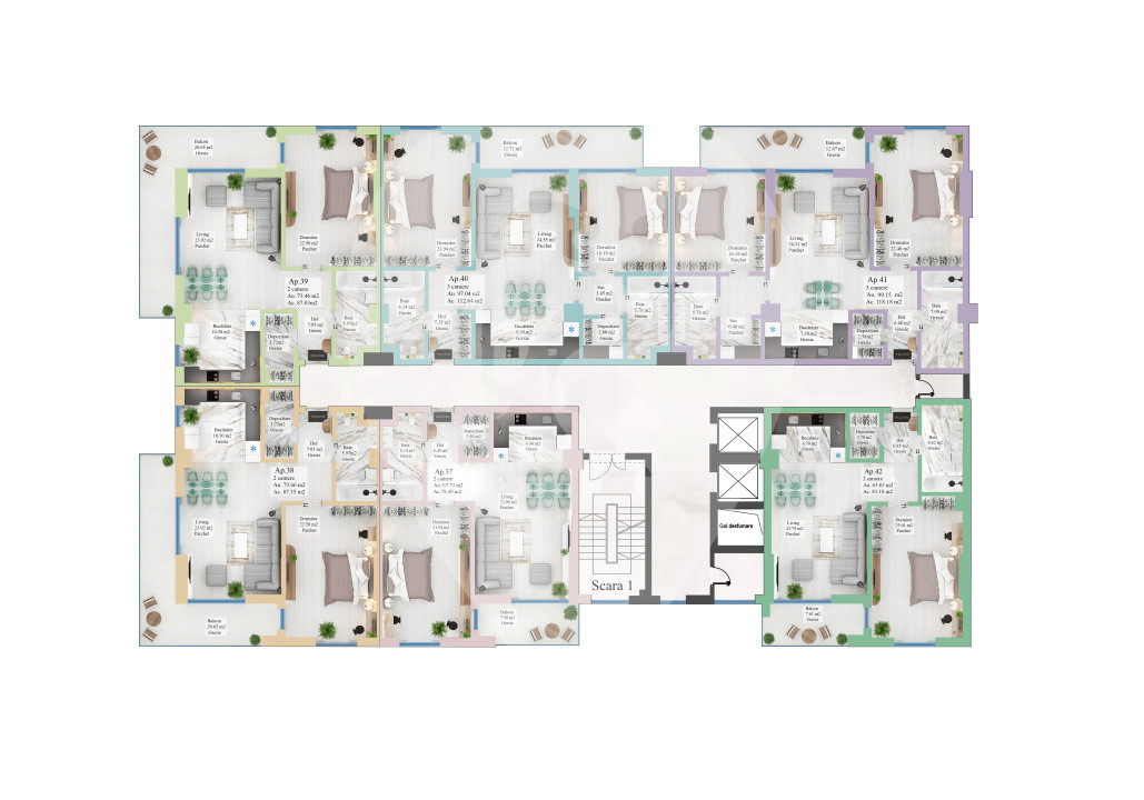 -Spații verzi întinse pe o suprafață de 54% din terenul ansamblului