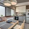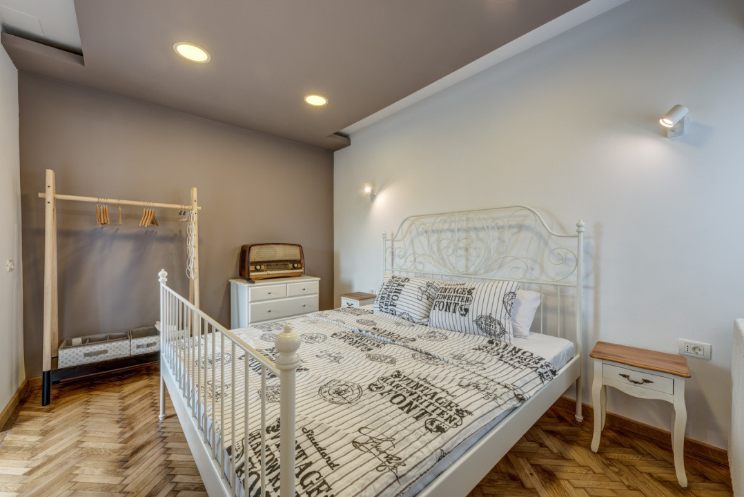 Dispune de un living luminos echipat cu o canapea extensibila, TV, AC, dormitor cu pat matrimonial, dressing incapator, 1 baie.